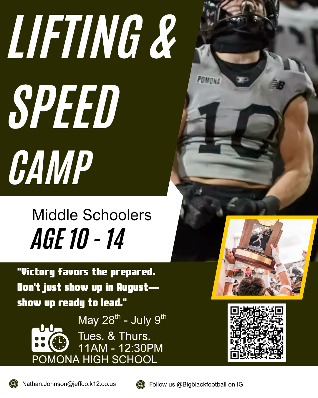 Camp Description: This 6-week camp is a good opportunity for incoming 5th-8th grade athletes to learn the mechanics of proper weight training and to also get faster and become a better athlete for their upcoming sports seasons.